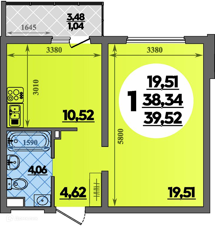 Планировка 1 комн. в ЖК Предгорье Лаго-Наки