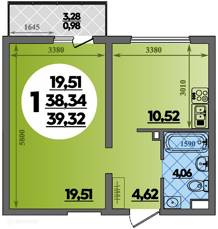 Планировка 1 комн. в ЖК Предгорье Лаго-Наки
