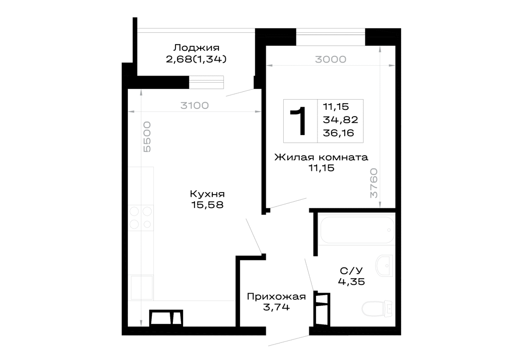 Доступна к покупке 1-комнатная квартира в востребованном жилом комплексе "Горные высоты" 🏢. Квартира расположена на 2-м этаже 16-этажного дома. Прекрасный выбор для семьи.