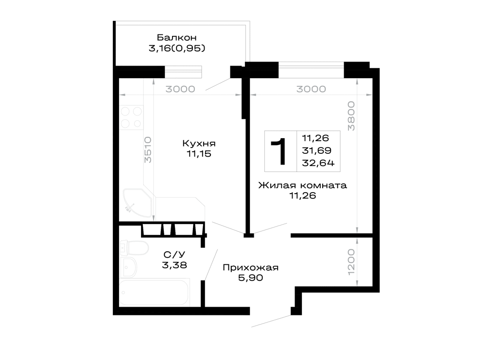 Предлагается 1-комнатная квартира в новом жилом комплексе "Горные высоты" 🏢. Квартира расположена на 2-м этаже 16-этажного дома. Отличный вариант для семьи.
