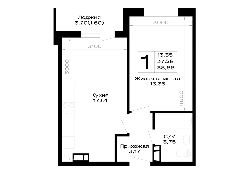 38.88 м²