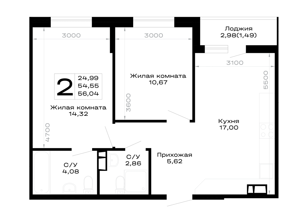 Предлагается 2-комнатная квартира в новом жилом комплексе "Горные высоты" 🏢. Квартира расположена на 2-м этаже 16-этажного дома. Прекрасный выбор для семьи.