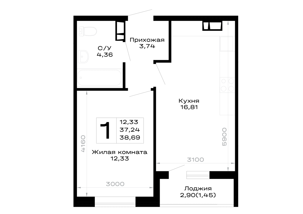Предлагается 1-комнатная квартира в востребованном жилом комплексе "Горные высоты" 🏢. Квартира расположена на 2-м этаже 16-этажного дома. Отличный вариант для инвестиций.