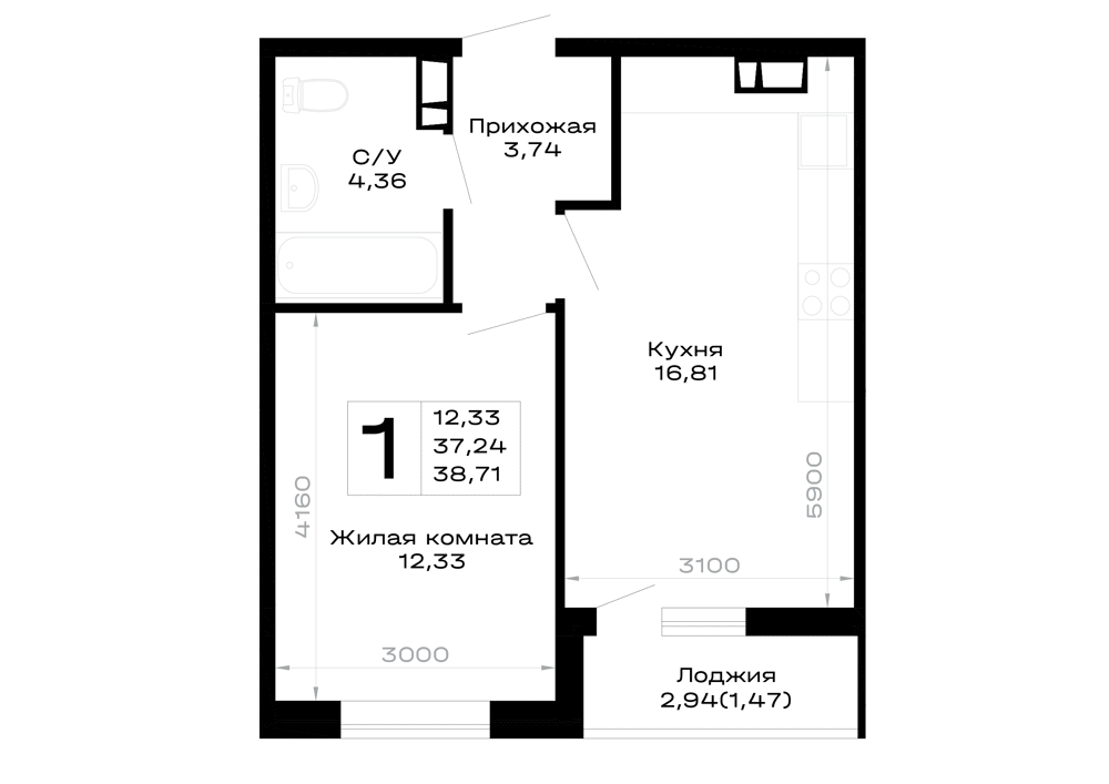 1-комнатная