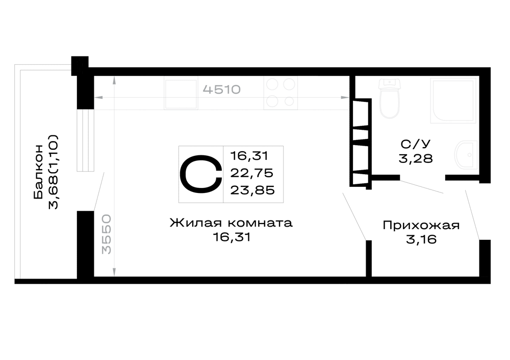 Доступна к покупке Студия в новом жилом комплексе "Горные высоты" 🏢. Квартира расположена на 2-м этаже 16-этажного дома. Прекрасный выбор для семьи.