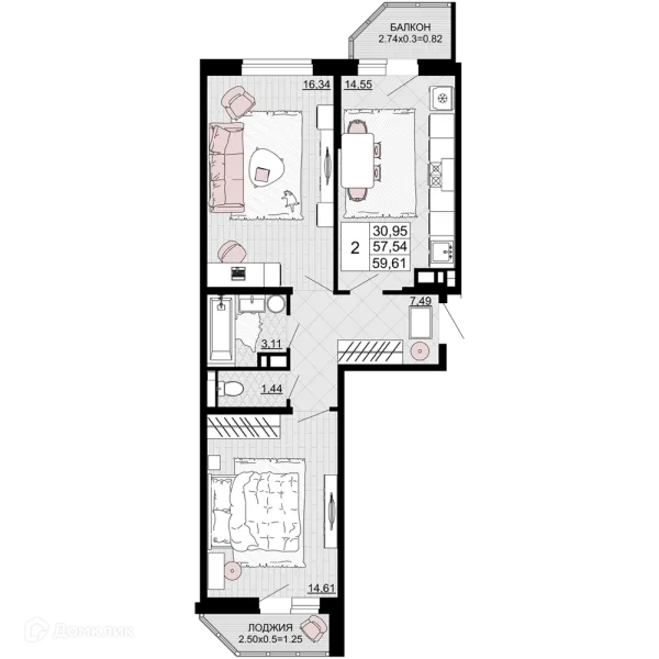 2 комн. квартира в Майкопе в ипотеку от 61 179 руб/месяц