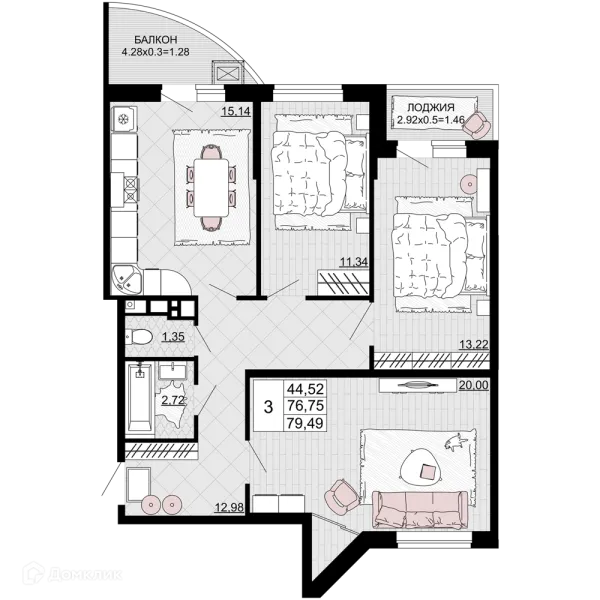 3 комн. квартира в Майкопе в ипотеку от 76 702 руб/месяц