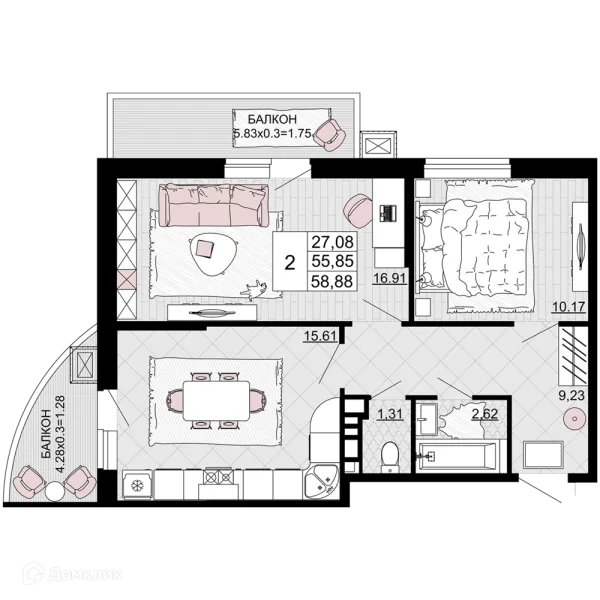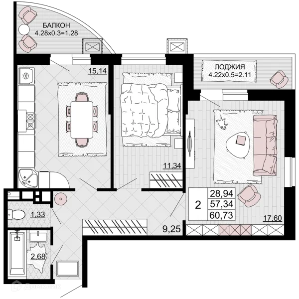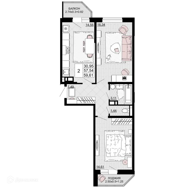 2 комн. квартира в Майкопе в ипотеку от 59 073 руб/месяц