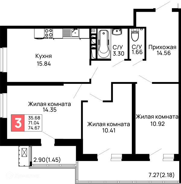 3 комн. квартира в Майкопе в ипотеку от 84 687 руб/месяц