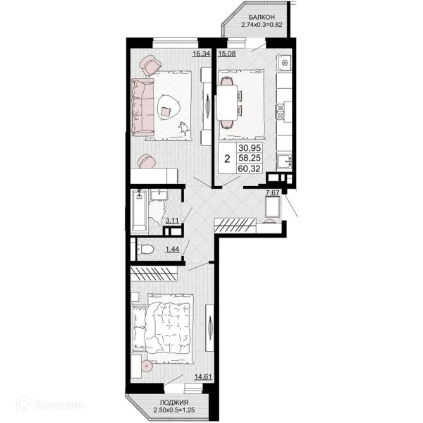 2 комн. квартира в Майкопе в ипотеку от 60 260 руб/месяц