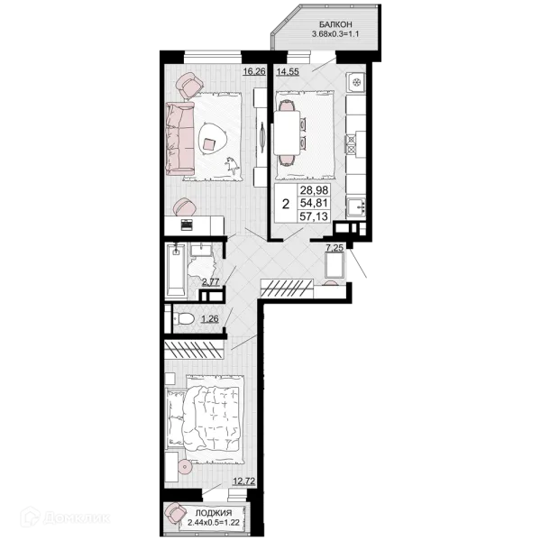 2 комн. квартира в Майкопе в ипотеку от 57 663 руб/месяц