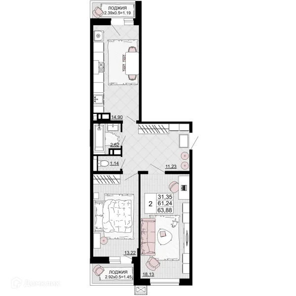 2 комн. квартира в Майкопе в ипотеку от 59 475 руб/месяц