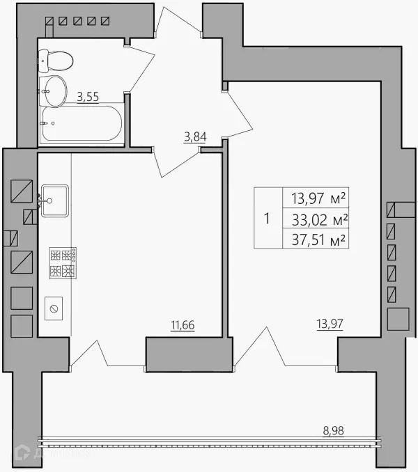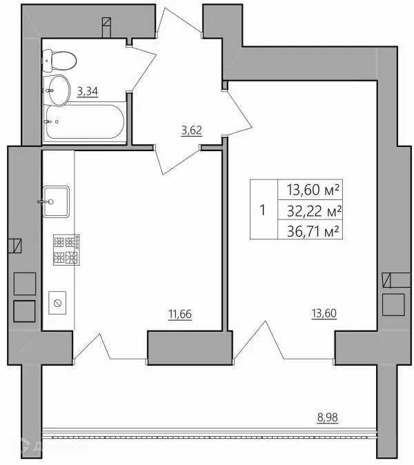 1 комн. квартира в Костроме в ипотеку от 26 302 руб/месяц