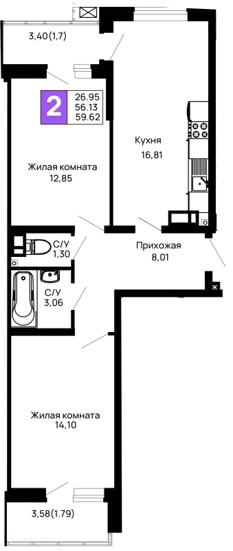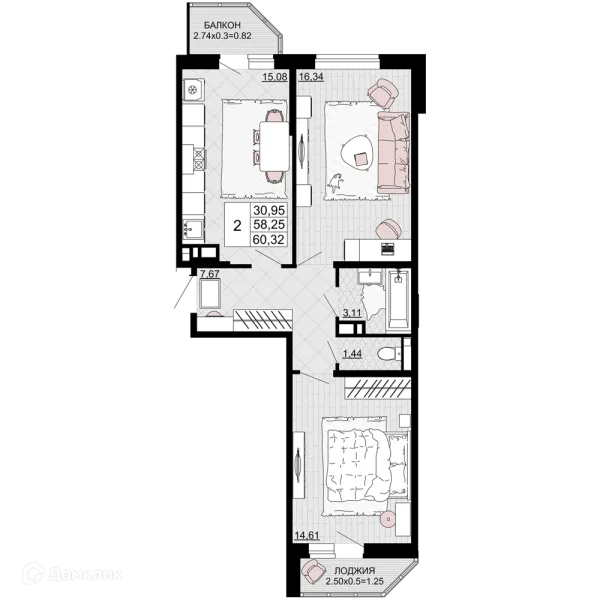2 комн. квартира в Майкопе в ипотеку от 59 073 руб/месяц